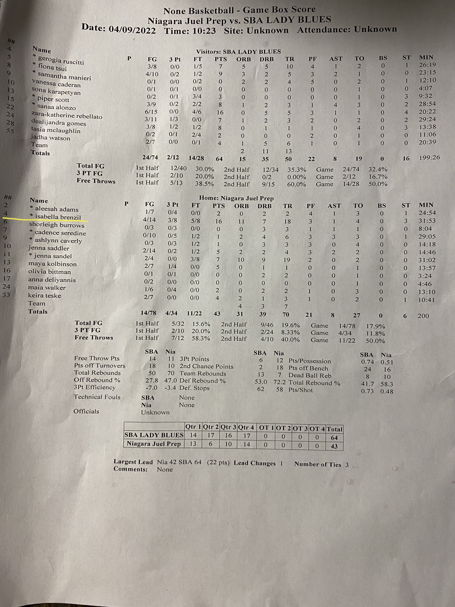 Sheet 10: 8 Points, 8 Rebounds, 4 Steals, 1 Assist