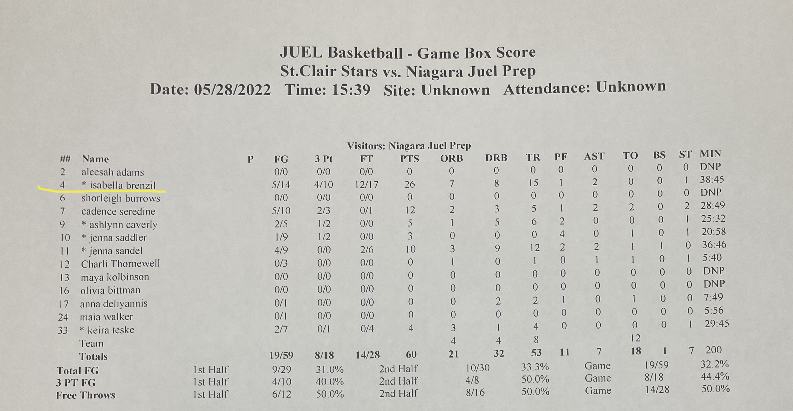 Sheet 7: 26 Points, 15 Rebounds, 2 Assists, 1 Steal